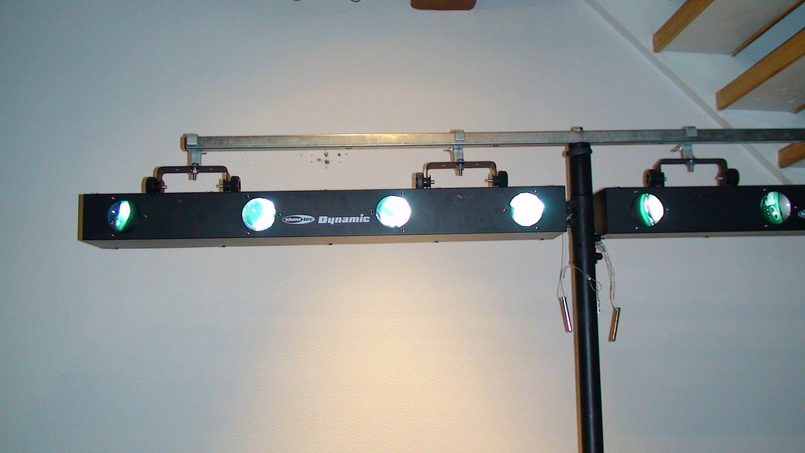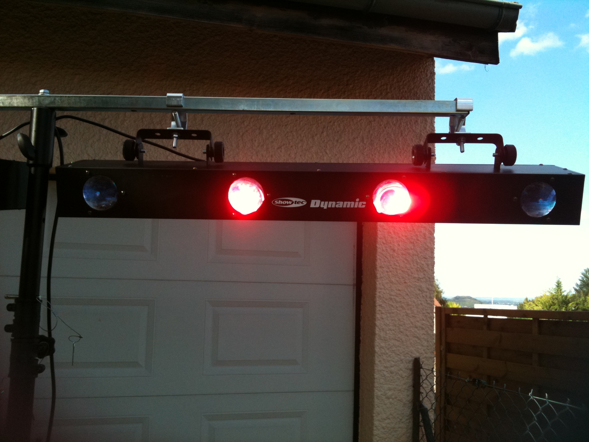 Pack 4+4 Dynamic LED Caractéristiques : Valeur caution : 400 € Location jour semaine : 25 € (hors jours fériés et veilles de fêtes) Livré avec un pied télescopique 2 MODULES DYNAMIC avec chacun 4 faisceaux Led consomme très peu Fonctionne au rythme de la musique Projette une multitude de points de différentes couleurs
